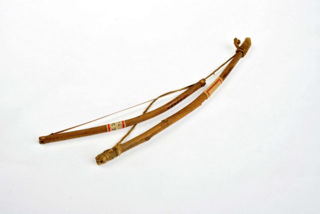 Este objeto é composto pelos nºs 6661 e 6661a, encontram-se unidos através das cordas que não permite separa-los e estava registrado como sendo um brinquedo. As informações e modificações relacionadas a esta peça foi obtida em fevereiro de 2015 com a realização da Oficina de Qualificação com índios da etnia Guarani Kaiowá, integrantes do Projeto de Sonoridades, vinculados ao Programa de Documentação de Línguas e Culturas Indígenas, em parceria com a UNESCO. Participaram da atividade dois rezadores de aldeias distintas, Valério Vera Gonçalves, da Aldeia Panambi, em Douradinho/MS e Atanásio Teixeira, da Aldeia Limão Verde, em Amambai/ MS, além dos pesquisadores Izaque João e Spency Pimentel. Já da equipe do Museu, estiveram presente a chefe do Serviço de Conservação, Maria José N. Sardella e as museólogas, consultoras da UNESCO, Fabiana Targino e Andrea Maia. Este instrumento musical originalmente era confeccionado com a madeira "kaiu`y", é específico de uso do rezador, com este instrumento ele pode cantar "kotyhu" (cântico de diversão) e "guahu" (ritual), mas, após tocar o mesmo tem que fazer uma reza de "nhemboroì" (reza espacífica para não fazer mal para a família, tirar todo o efeito maligno que possa acontecer); ;