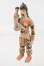 Boneca karajá representando figura do sexo feminino, de pé, sustentando criança sobre o braço esquerdo. Apresentando pintura corporal com motivos geométricos característicos do grupo nas cores: vermelho de urucum e preto de jenipapo